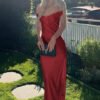 Crafted for standout formal occasions, this prom dress showcases an off-shoulder neckline that frames the shoulders beautifully. The fitted bodice flows into a gentle mermaid silhouette, enhancing natural curves without feeling restrictive. Made from satin with a subtle sheen, the fabric adds depth and richness under evening lighting. A smooth inner lining supports comfort while maintaining structure. This dress is designed for prom, galas, and evening events where elegance, confidence, and refined detail are essential.
