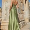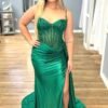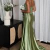 A spaghetti strap satin mermaid prom dress designed to highlight curves with a smooth, elegant finish.