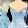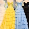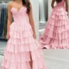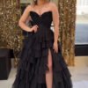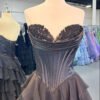 This strapless prom dress is designed with a smooth satin finish and a classic A-line silhouette that flatters the waist while allowing natural movement. The structured bodice offers gentle support, creating a balanced fit without feeling restrictive. The satin fabric feels soft against the skin and holds its shape beautifully throughout long events. Designed for prom nights and formal occasions, this dress delivers a clean, elegant look that remains timeless and refined.